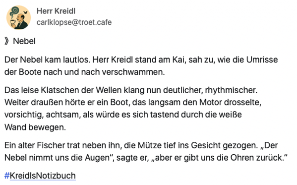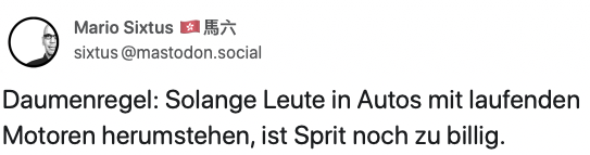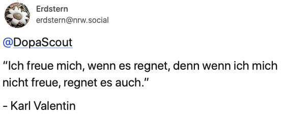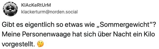 Bei mir mal wieder DHL Blödsinn gemacht. Tracking war ich nicht anwesend und der Zustellversuch war nicht erfolgreich und ich sollte die Lieferung im Service Point abholen. Da ich keine Benachrichtigungskarte im Briefkasten hatte und mein erster Versuch, den Service Point über die DHL Seite zu ermitteln nicht erfolgreich war, habe ich dann versucht über die Trackingnummer den Service Point zu ermitteln. Leider gab die Anfrage über meinen Standardbrowser kein Ergebnis. Da der Service Point, bei dem ich schon häufiger Sachen habe abholen müssen auf dem Weg zum Markt lag, habe ich in dem entsprechenden Shop nachgefragt, weil er ausnahmsweise außerhalb der Öffnungszeiten geöffnet hatte wegen einer bevorstehenden Getränkelieferung. Leider erfolglos. Als ich wieder zu Hause war, versuchte ich das Tracking noch mal mit einem anderen Browser und siehe da: die Sendung liegt in der anderen Richtung. Also Montag noch mal.
