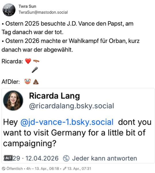 Diese Woche war digitale Gewalt eines der Themen, aufgehängt an den Berichten zum Fall Fernandes/Ulmen. Nachzulesen in einem ausführlichen Spiegelartikel, leider hinter einer Paywall. Dieser Beitrag der Tagesschau fasst das Geschehen auch zusammen.