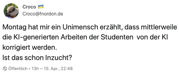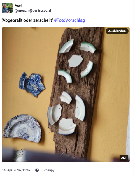 Auf Mastodon gibt es einen Wettbewerb, an dem ich in jeder Woche versuche, teilzunehmen. Er ist zu finden und dem #Freitagstexterei. In dieser Woche war nach einem Text gefragt zu diesem Foto: