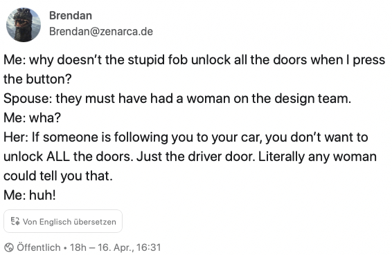 Heute hat sie die Titelstory im Spiegel, denn sie hat heraus gefunden, wer die DeepFakes angefertigt hat; es war wohl ihr Mann.Nein, nicht alle Männer. Aber halt wieder ein Mann. Wieder ein Mann, der über alle Grenzen ging.