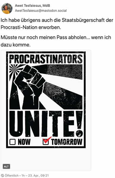 Ihr findet mich unter @mouchi@berlin.social