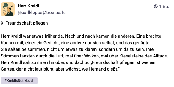 Wer Schreibfehler findet, darf sie gerne behalten. Man darf auch kommentieren, das würde mich freuen.